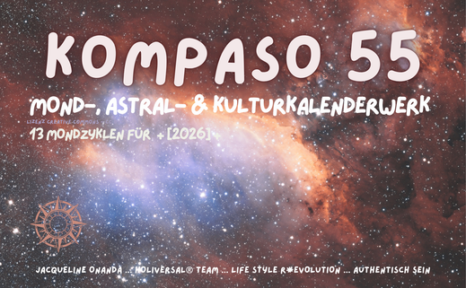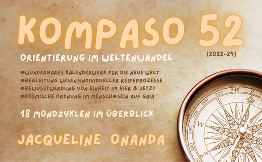 Endlich ist es gelungen ... nach 10 Jahren intensiver Forschung auf feinsinnigen Ebenen aller Kulturen und Perspektiven auf unser DASEIN, ist KOMPASO geboren ... als Wandkalender mit 14 Mondzyklen im Überblick, als online Energiewetterbericht mit tagesaktueller Information, als Glossar in eBook oder als Paperbook für Selbststudium und tiefere Forschungsraisen, als Jahresplaner und Tagebuch (in Arbeit) sowie in Orientierung schenkenden Vorträgen, Videos, Seminaren, Workshops und Coachingprogrammen teilt Jacqueline ONANDA ihre wunderbaren Erkenntnisse.