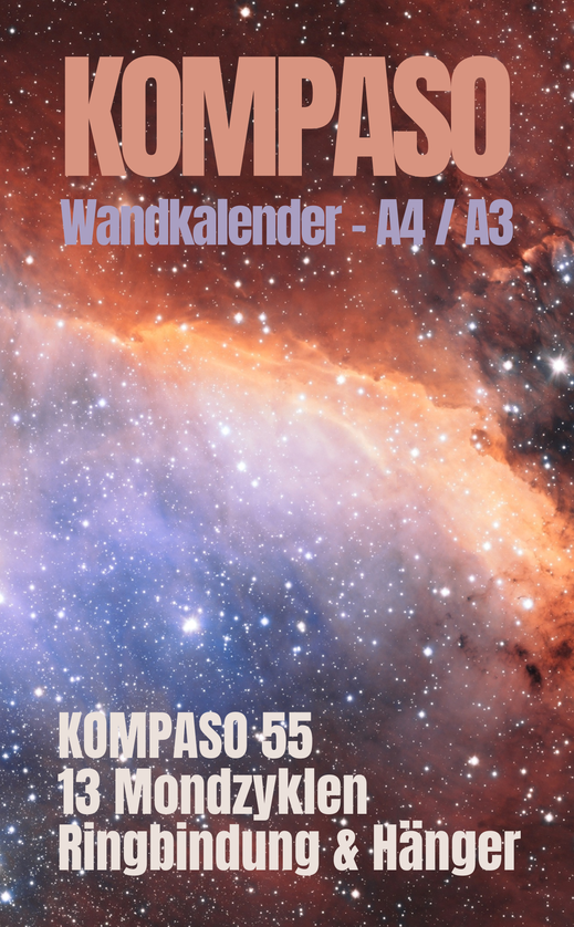 Der erste Astrokalender KOMPASO wurde im Herbst nach der Krönchen-Zeit gedruckt. Mit 18 Mondzyklen und viel Magie dient das Werk den ganzheitlichen BewusstwERDUNGsprozessen auf GAIA.